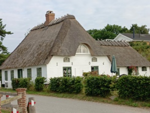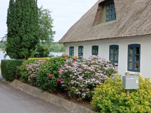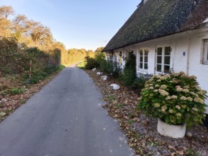 Meine Touren führen mich nicht immer nur durch Wälder und über Wiesen, hin und wieder komme ich auch durch kleine Dörfer. Das ist es was mich auf meinen Touren immer wieder bezaubert, diese kleinen idyllischen, mit Liebe gepflegte reetgedeckte Häuser. Da verspüre ich sie dann wieder, was mich an Dänemark immer so fasziniert, die „Hygge“, diese Gemütlichkeit, etwas was man nicht beschreiben kann, man fühlt es. „Hygge“ in Dänemark ist nicht nur ein Wort, es ist ein Lebensgefühlt, und das fühle ich auch wenn ich diese Häuser von außen sehe. Drinnen stelle ich mir jetzt einen gedeckten Kaffeetisch mit frischgebackenem Kuchen vor, ich kann ihn gerade riechen, den Kaffee & Kuchen.