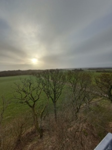 Diese Tour stand unter ganz besonderem Schutz und unter besonderen Andacht, ich fühlte mich gut behütet. Bei der Kirche stand ich leider vor verschlossenen Türen, man hat dann wohl doch nicht mit mir gerechntet, vielleicht habe ich das nächste Mal das Glück die Kirche auch von innen zu besichtigen. Die Tour ging von der Kirche in Løgumkloster zur höchsten Erhebung im westlichen Nordschleswig, dem Vongshøj in den Løgumberge. Von hier oben können sie bei guter Weitsicht die Dünen von Sylt und Rømø sehen.