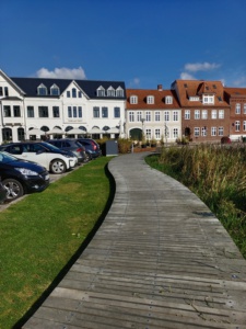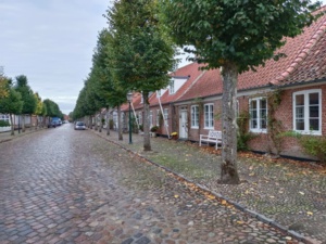 Manche Wandertouren führen mich hin und wieder durch kleine weniger bekannte Dörfer, vorbei an alten Bauernhäuser oder schöne Parks. Unerwartete Überraschungen mit denen man vorher nicht rechnet und eine Wandertour immer wieder aufwerten. Diesesmal wußte ich bei der Planung das es vorbei am Schloss Schackendorf und über Dänemarks schönste Pflasterstrasse die Schlossstraße in Møgeltønder ging. Na hoffentlich nicht zu sehr von Touristen besucht dachte ich mir vor der Reise. Ich meide solche Touristen Hotspots immer sehr gerne, aber soll ja eine echt schöne Straße sein, ließt man. Also dachte ich mal hin, außerhalb der Reisezeit war ich dann doch fast der Einzige. So konnte ich die Schlossstraße im Herbst wirklich menschenleer bestaunen und fand sie wirklich schön. Eine mit Lindenbäume gesäumte Straße, kleine Backsteinhäuser mit liebevoll gestalteten Eingangstüren.