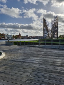 Eine Wandertour dürfte für die meißten wohl Sonntags morgens nicht auf dem Plan stehen. Ich verachte einen Kaffee Sonntags morgen auch nicht, darauf werde ich auch nicht verzichten, mein Kaffee wartet in meinem Rucksack auf eine kleine Rast die ich später einlegen werde. Los ging es in Sønderborg an der Klappbrücke auf dem Nydamstien Richtung Schloss Sandbjerg das etwas versteckt in einem Wald liegt. Am Als Sund entlang führte mich mein Weg vorbei an einem Nachbau des Nydam Bootes.
